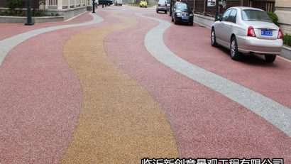 砾石聚合物地坪是在通体彩色混凝土初凝前,按照一定的比例要求将特殊骨料均匀的抛洒于 Read More …