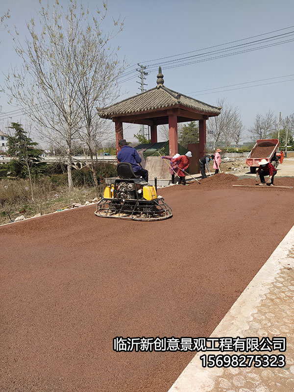 2、浇筑:混凝土搅拌完成准备铺装时,要用水保持路基湿润,有助于增加骨料间的粘结强度。要检查是否平整,不平整会使透水层开裂。没有问题直接将搅拌好的混凝土在路基上铺平即可。承载级路面一般分透水水稳层和彩色面层两层组成,两层可同时施工,亦可分两次施工。