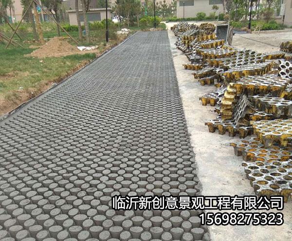 植草地坪是通过钢筋将用模具制作出来的混凝土块连接起来,形成一个整体,再在空隙中填满种植土,播种或栽种草苗的施工工艺。它与传统的植草砖相比整体性、稳定性好,由于有钢筋连接,不会出现传统植草砖的易破碎、局部沉降等现象,而且混凝土块的形状、图案及空隙距离可随意调整,施工起来更灵活。