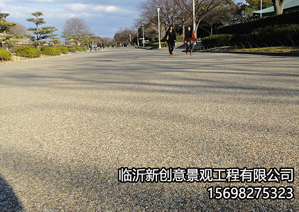 砾石聚合物混凝土是以混凝土为基础,在混凝土搅拌时加入聚合物增效剂,优化砾石混凝土配合比,在聚合物混凝土提浆抹平或刮平表面,在聚合物混凝土表面撒播各种不同品种、不同规格的骨料,在出现泌水堆积,使用长柄镘板或刮板抹子将表面抹平坦及光滑。待聚合物混凝土有一定强度,对聚合物混凝土进行饰面洗刷,以或多或少或深或浅的暴露之前撒播的骨料,呈现现出各种场景的砾石景象,以达到预期的效果。